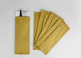 Buste portaposate realizzate con carta politenata idonea al contatto con alimenti. All’interno è inserito un tovagliolo bianco 38×38 a doppio