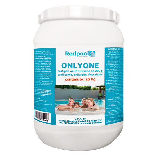 REDPOOL ONLYONE CLORO TRIFASE MULTIFUNZIONE CON ANTIALGHE E FLOCCULANTE CONF. 25 KG IN PASTIGLIE