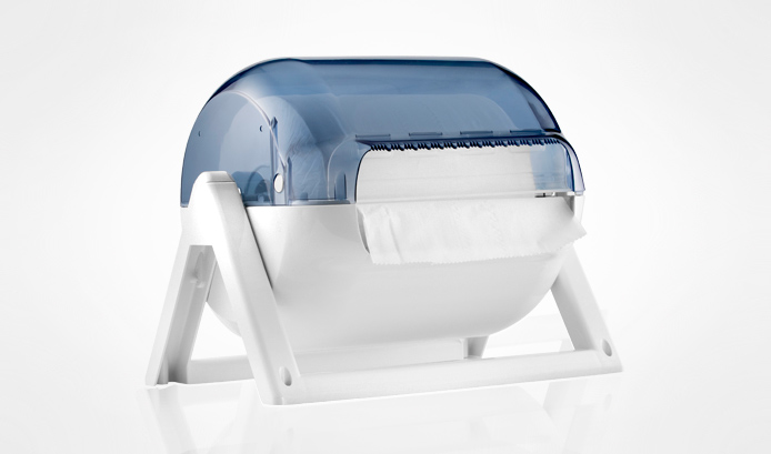 Dispenser HACCP per rotolo industriale – dimen.max rotolo Ø 280 x 260mm. – con carenatura per una TOTALE PROTEZIONE DEL ROTOLO – utilizzabile sia appoggiato che a muro