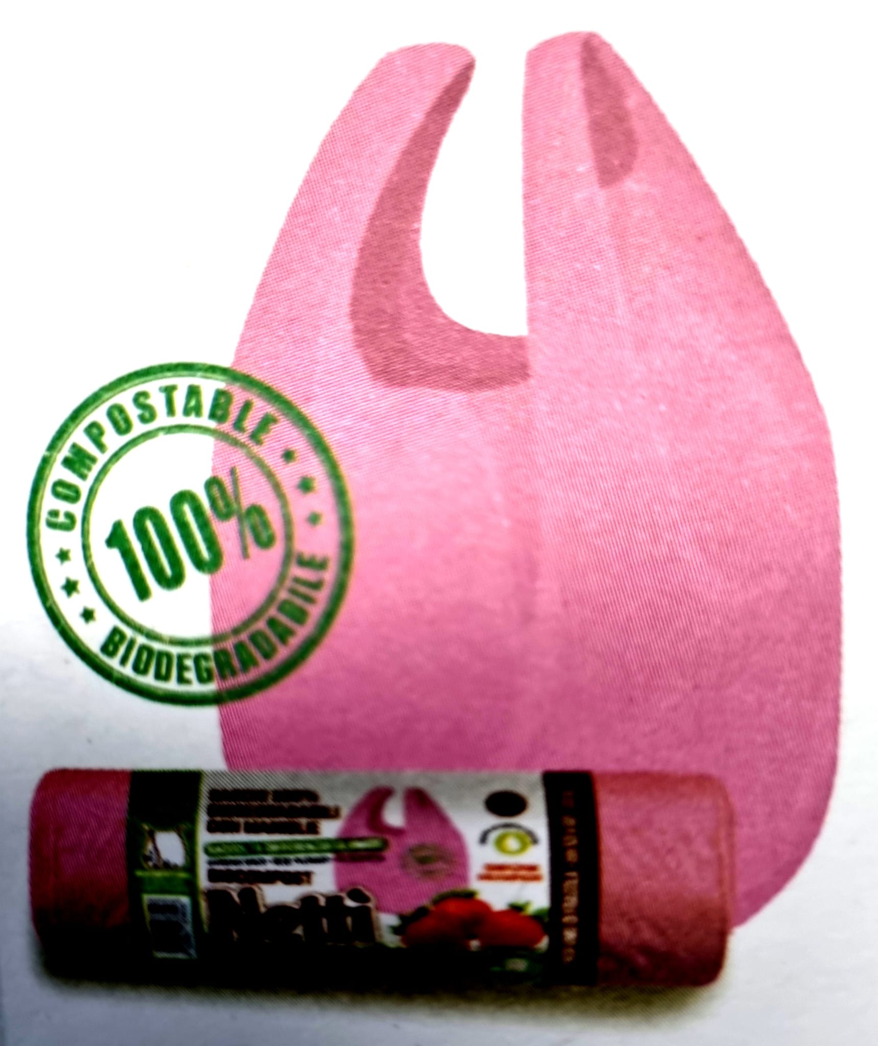 sachetti in rotolo biocompostabili per rifiuti umidi con maniglie profumati Fragola gr.17,5