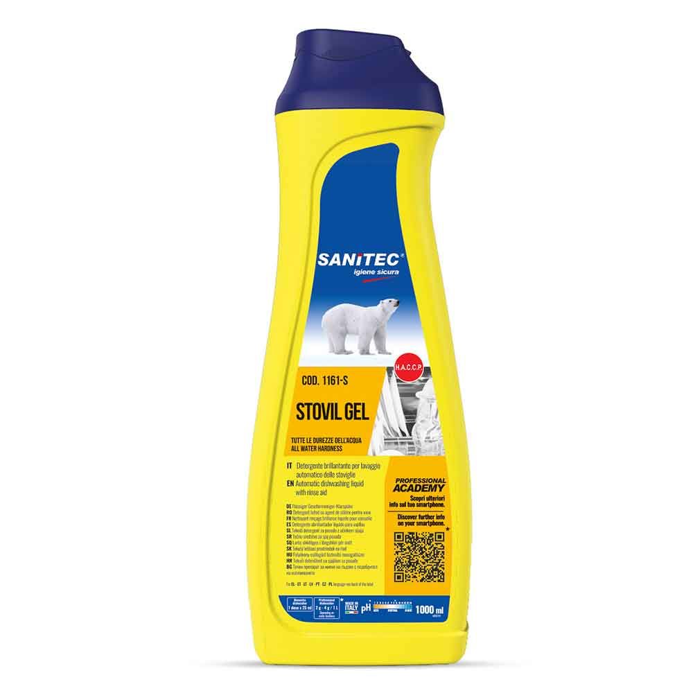 Detergente brillantante professionale Stovil Gel Sanitec 1 litro. Detergente brillantante per lavastoviglie domestiche e professionali adatto a tutte le durezze dell’acqua.