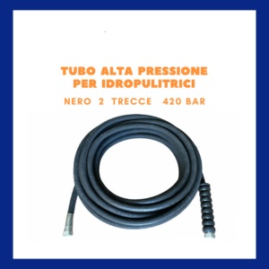 Tubo alta pressione R2 per idropulitrici professionali ad acqua fredda e calda 400 Bar nero R2 5/16” completo di manicotto. Attacchi femmine dritte da 3/8”.