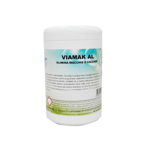 VIAMAK AL è una polvere alcalina con potere igienizzante dato dalla presenza di percarbonato di sodio che, disciolto in acqua tiepida e portato ad una temperatura di circa 35°, libera ossigeno attivo igienizzando così i tessuti. Grazie al fatto di contenere ossigeno attivo è considerato un prodotto sicuro ed efficace per l’ammollo di spugne e pannispugna da igienizzare e smacchiare.